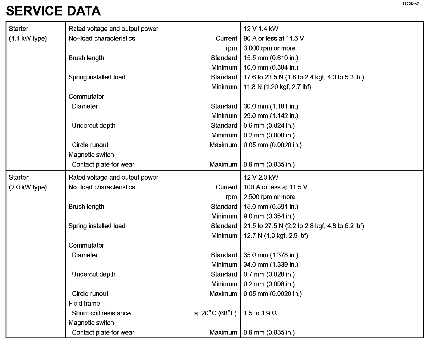 Starting-Service Data: