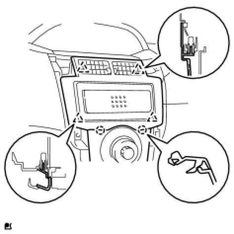 (a) Engage the 4 clips and 2 claws and install the air conditioning panel.
