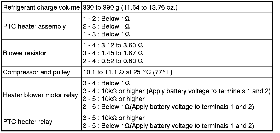 SERVICE SPECIFICATIONS: AIR CONDITIONING: SERVICE DATA