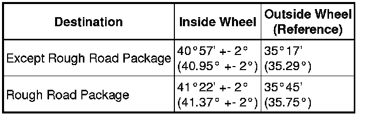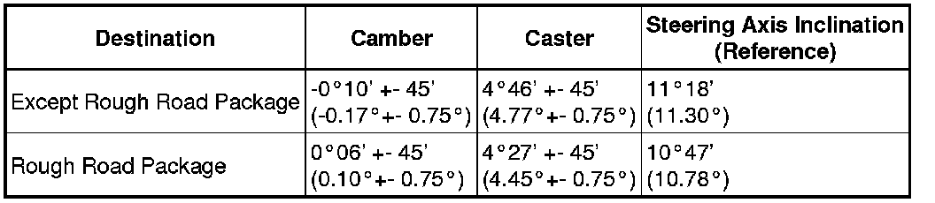 * The tolerance for the difference between the left and right wheels is 30' (0.5°) or less for both the camber and caster.