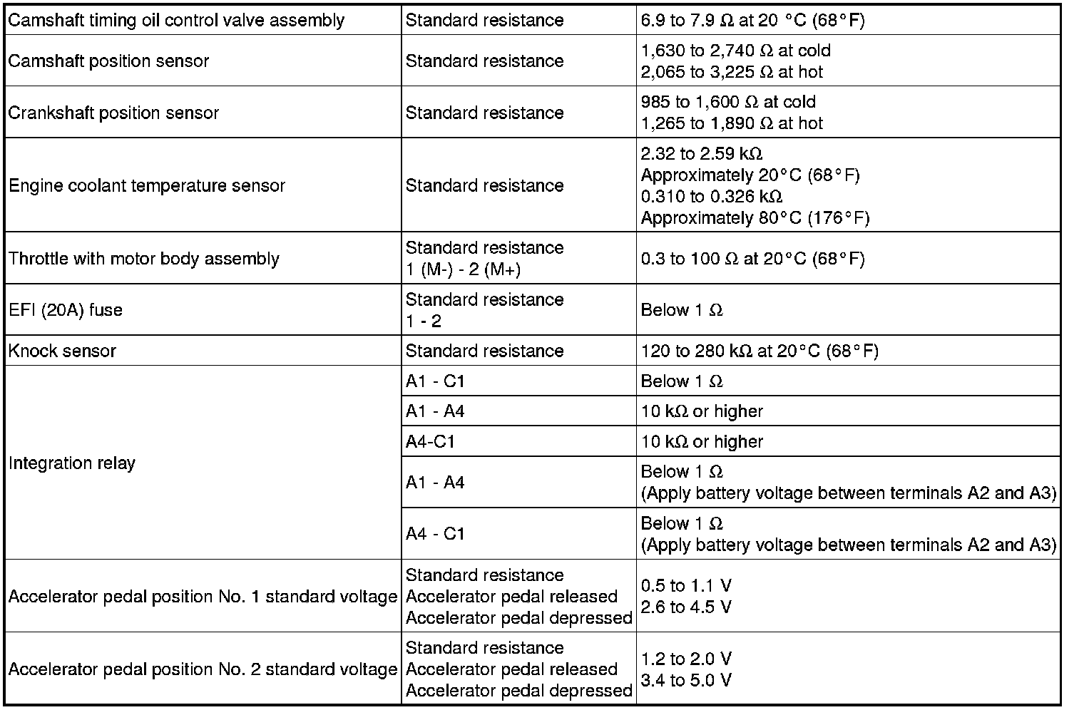 SERVICE SPECIFICATIONS: 1NZ-FE ENGINE CONTROL SYSTEM: SERVICE DATA
