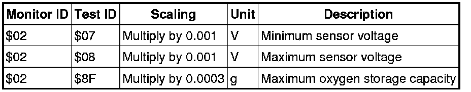 If you use a generic scan tool, multiply the test value by the scaling value listed below.
