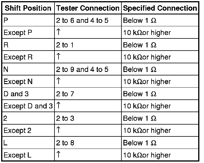 U340E AUTOMATIC TRANSAXLE: PARK / NEUTRAL POSITION SWITCH: INSPECTION