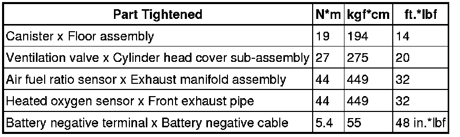 SERVICE SPECIFICATIONS: 1NZ-FE EMISSION CONTROL: TORQUE SPECIFICATIONS