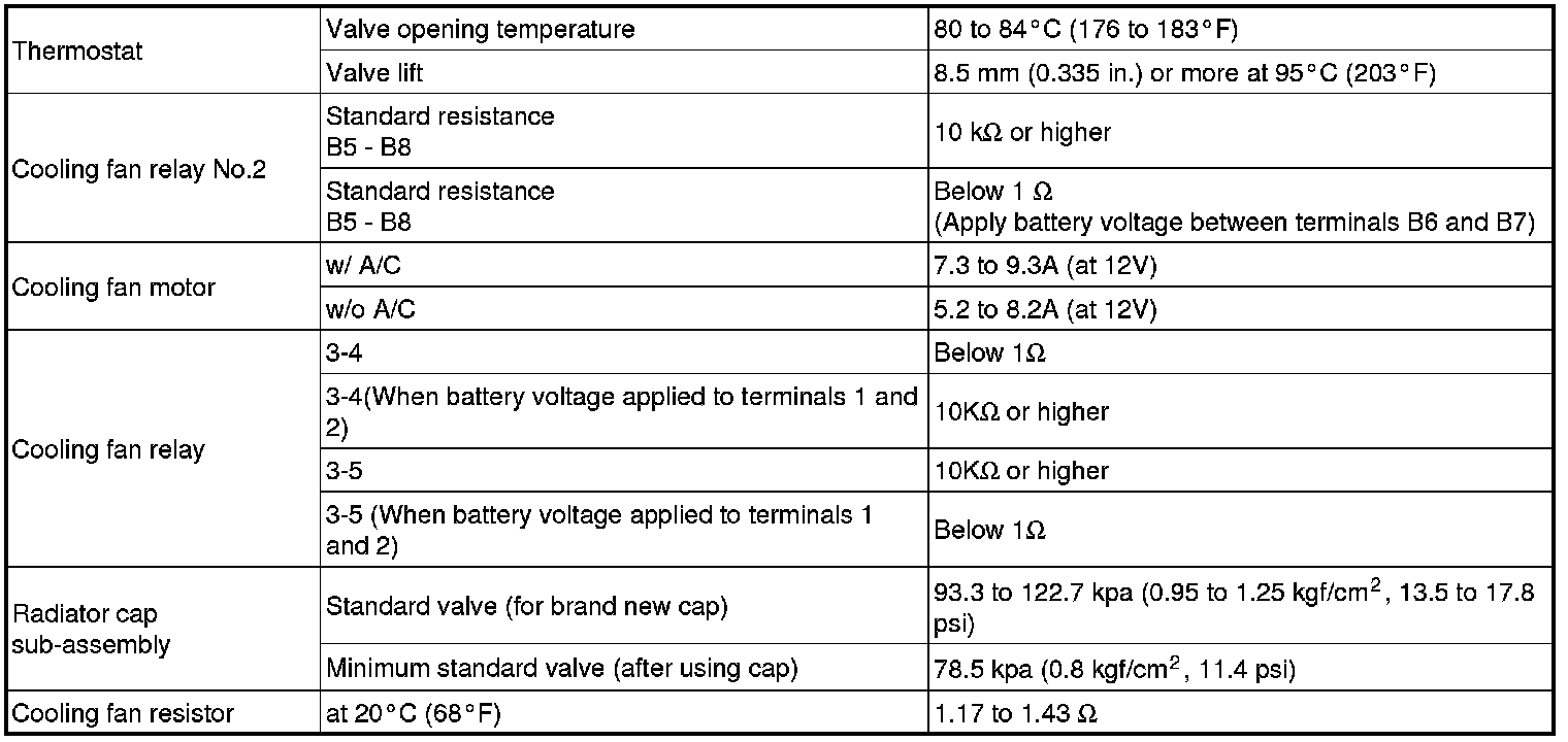 SERVICE SPECIFICATIONS: 1NZ-FE COOLING: SERVICE DATA