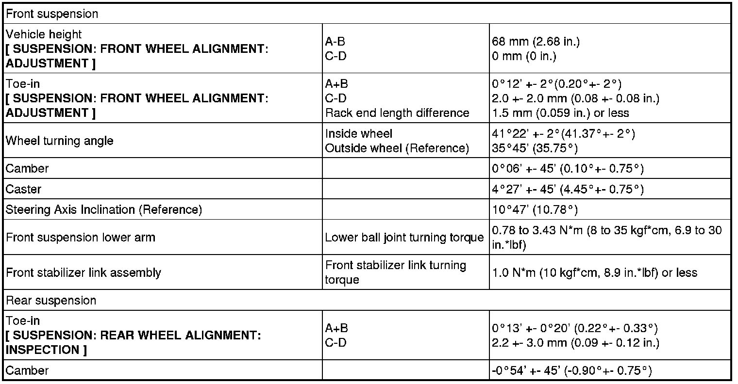 SERVICE SPECIFICATIONS: SUSPENSION: SERVICE DATA