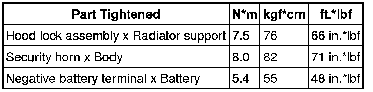 SERVICE SPECIFICATIONS: THEFT DETERRENT SYSTEM: TORQUE SPECIFICATIONS