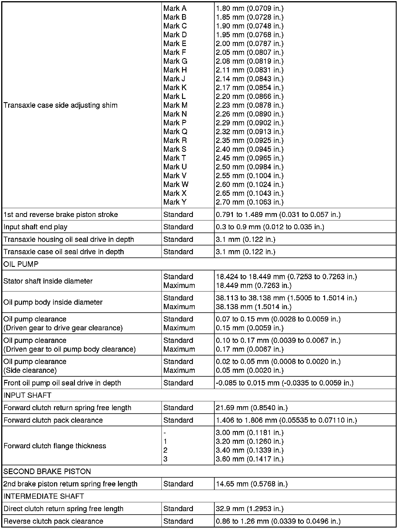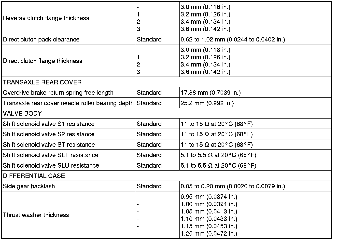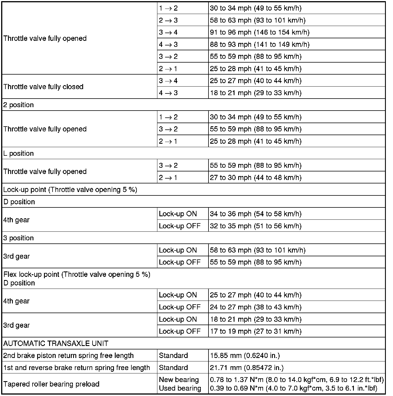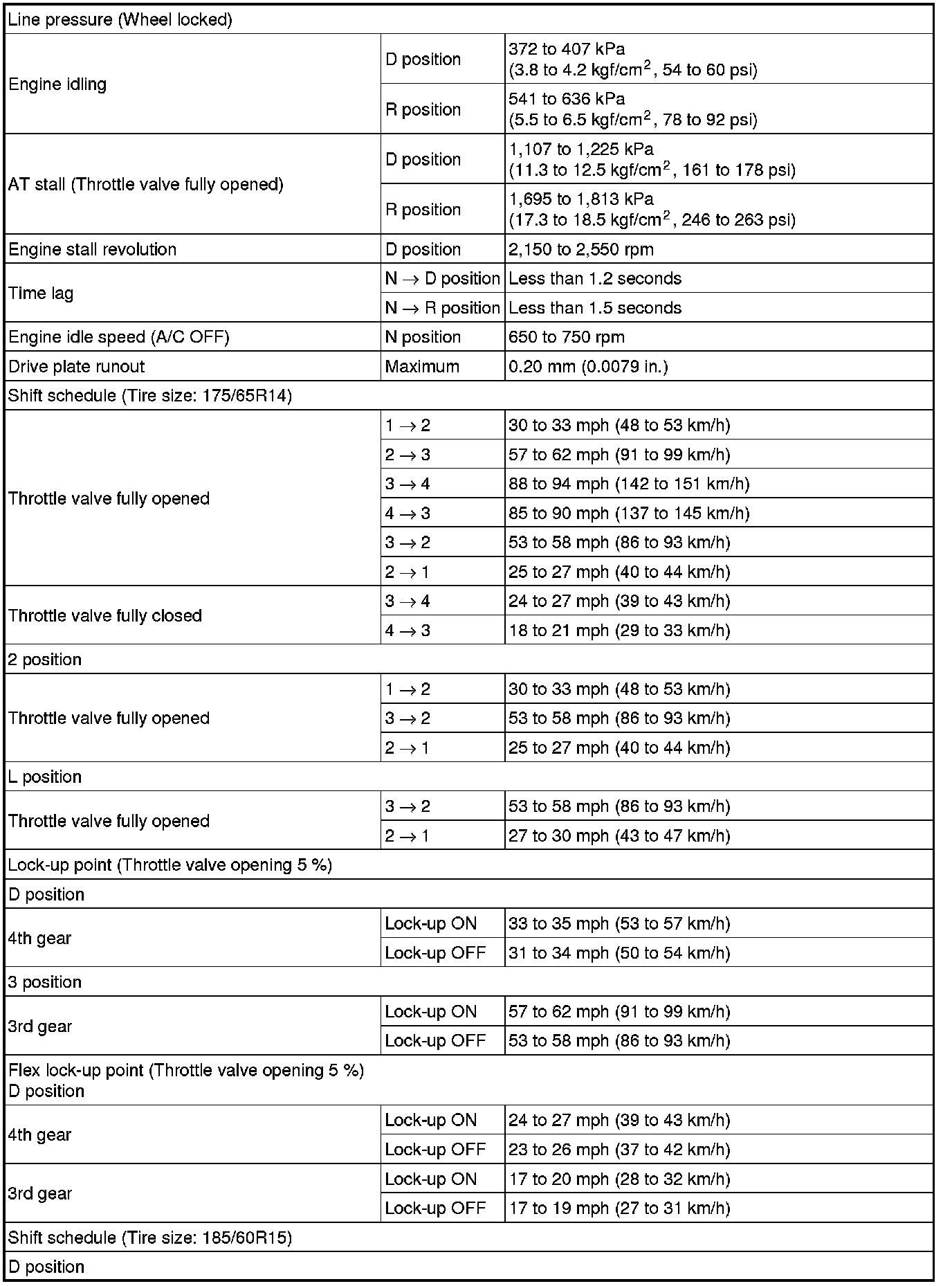 SERVICE SPECIFICATIONS: U340E AUTOMATIC TRANSAXLE: SERVICE DATA