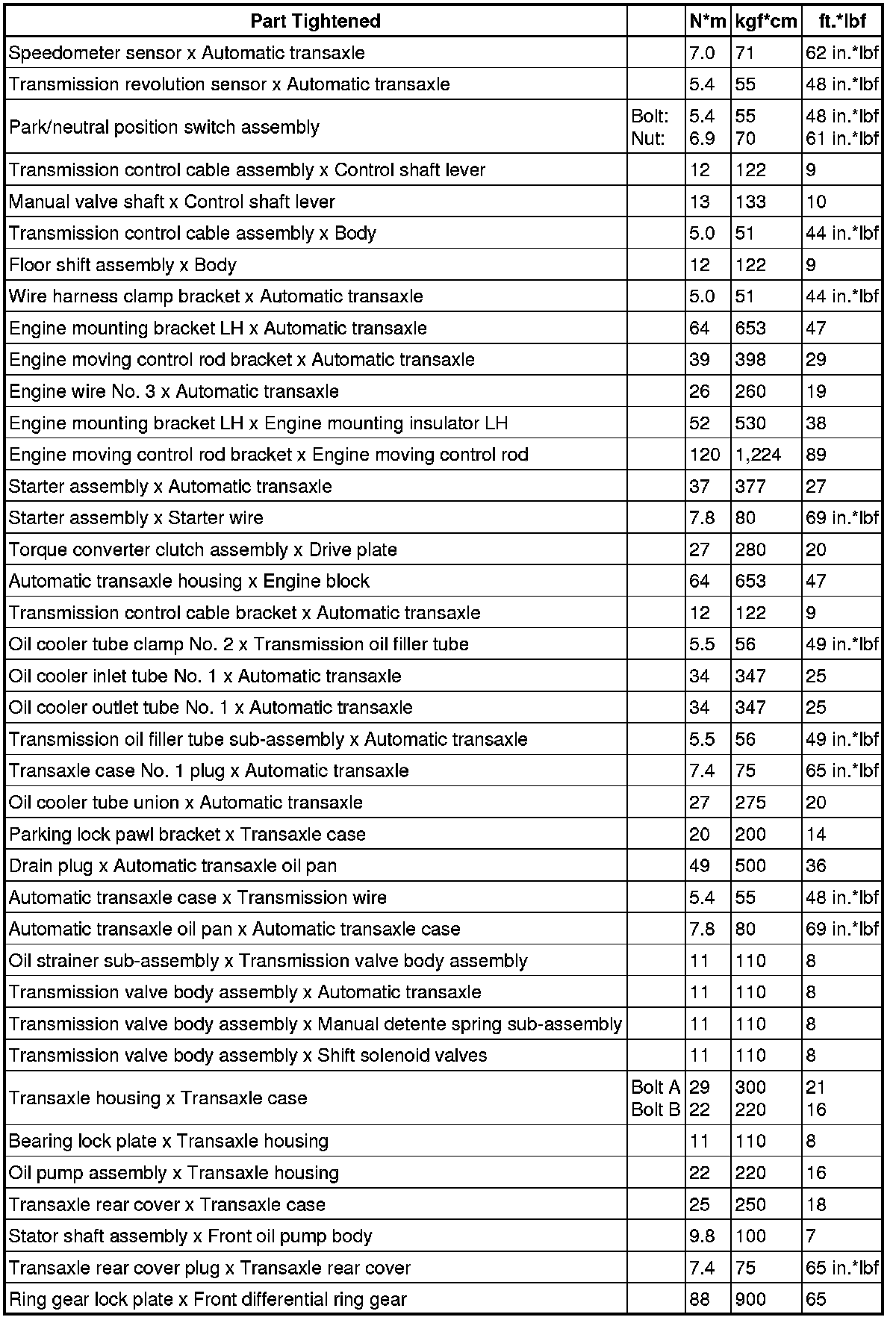 SERVICE SPECIFICATIONS: U340E AUTOMATIC TRANSAXLE: TORQUE SPECIFICATIONS