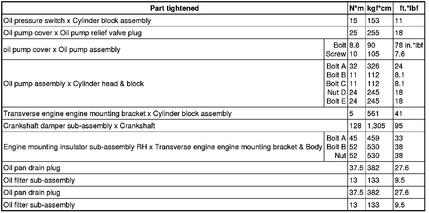 SERVICE SPECIFICATIONS: 1NZ-FE LUBRICATION: TORQUE SPECIFICATIONS