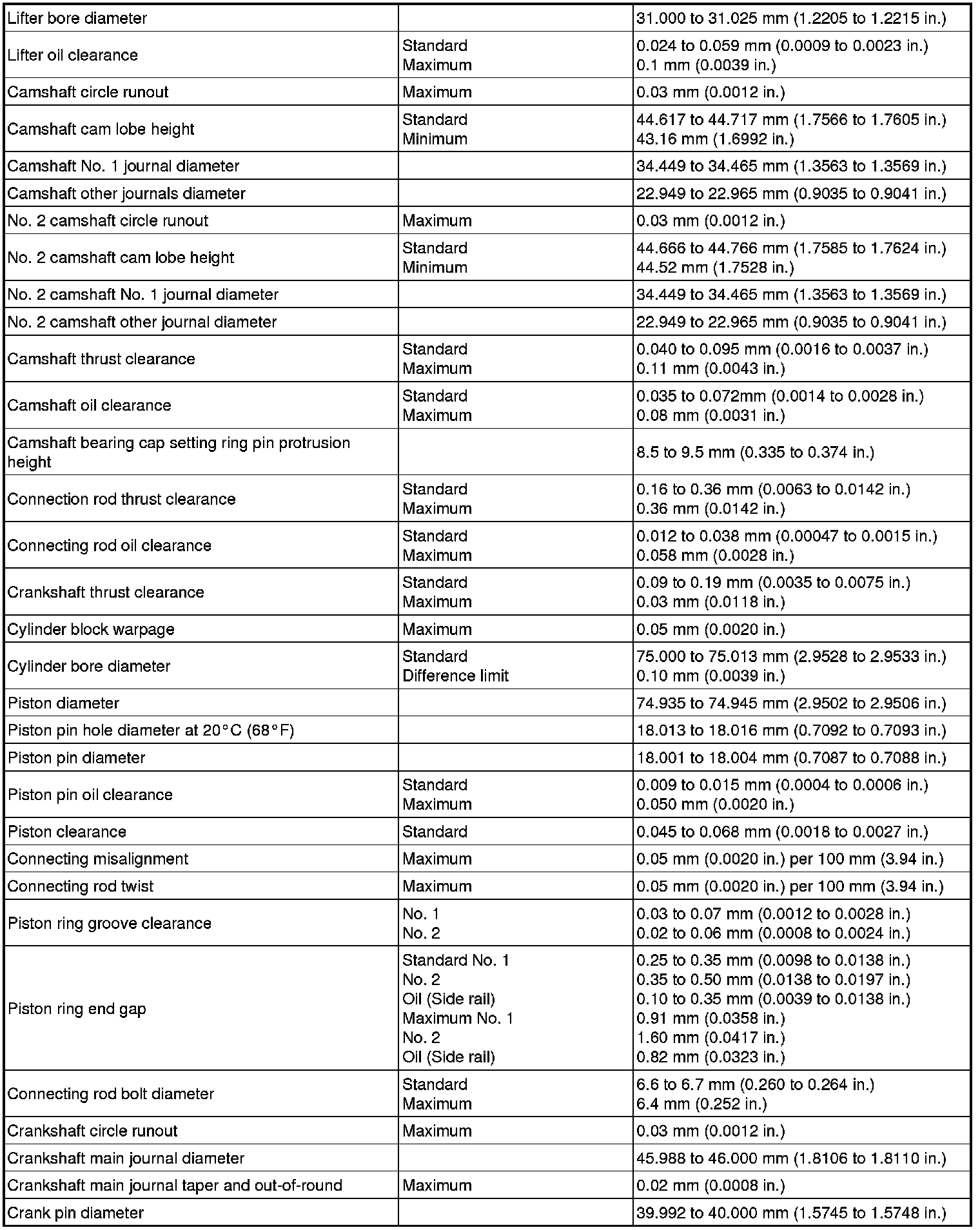SERVICE SPECIFICATIONS: 1NZ-FE ENGINE MECHANICAL: SERVICE DATA