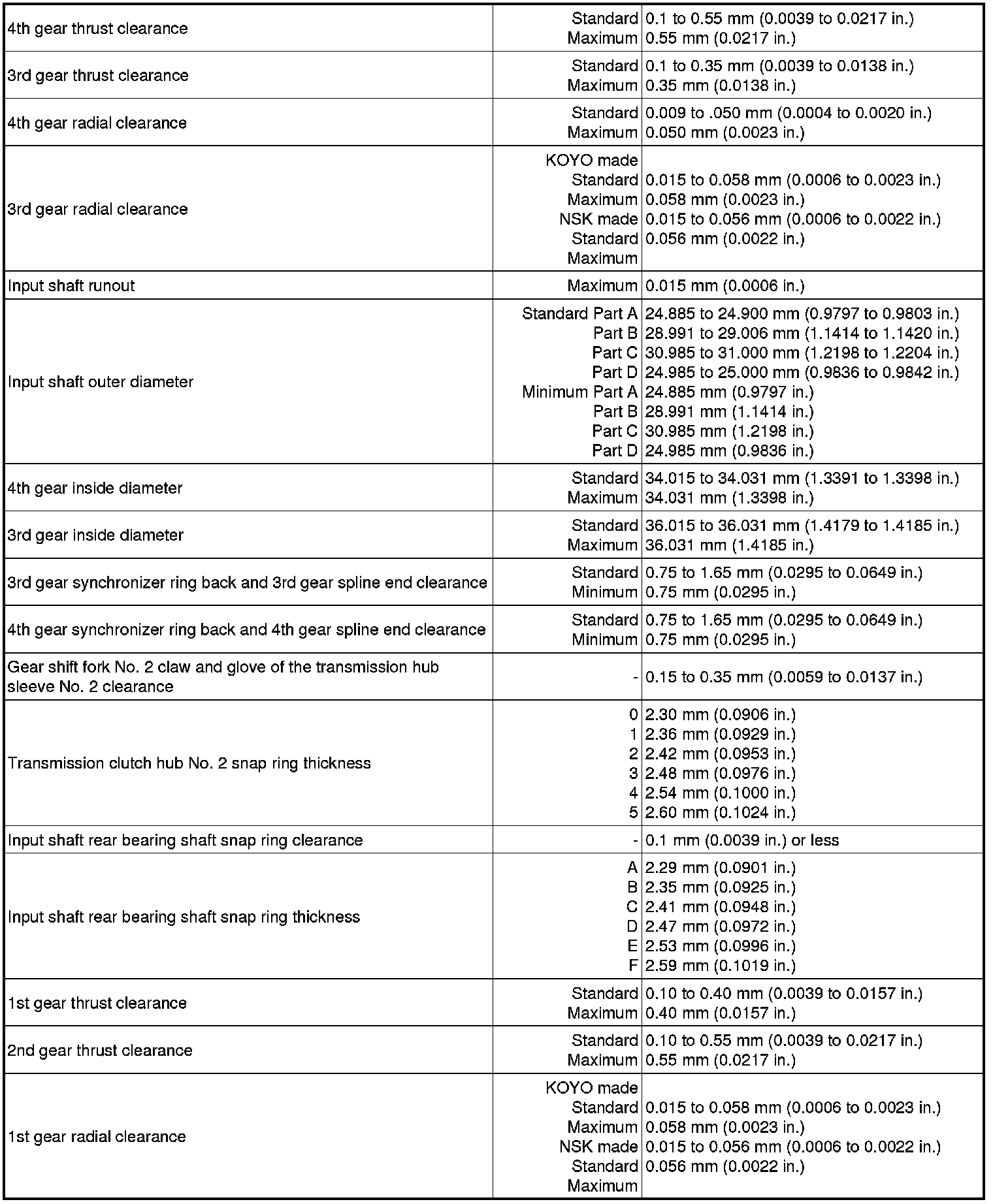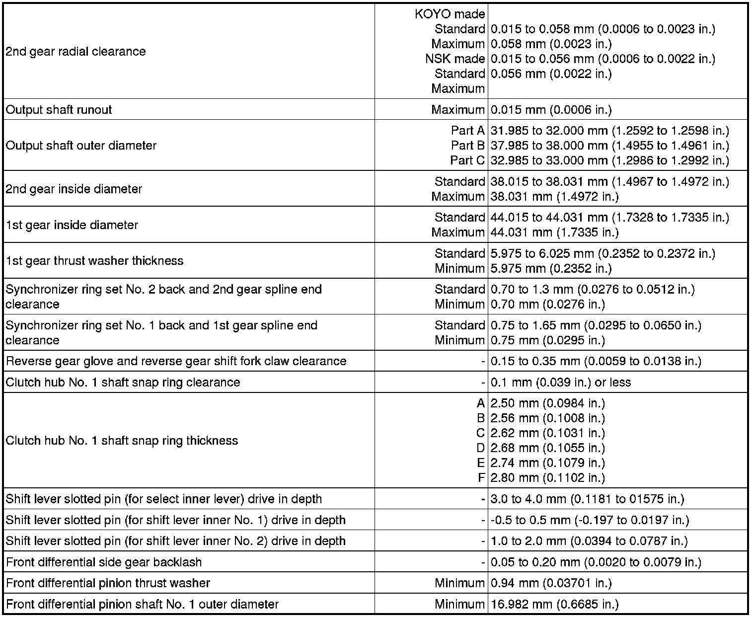 SERVICE SPECIFICATIONS: C50 MANUAL TRANSAXLE: SERVICE DATA