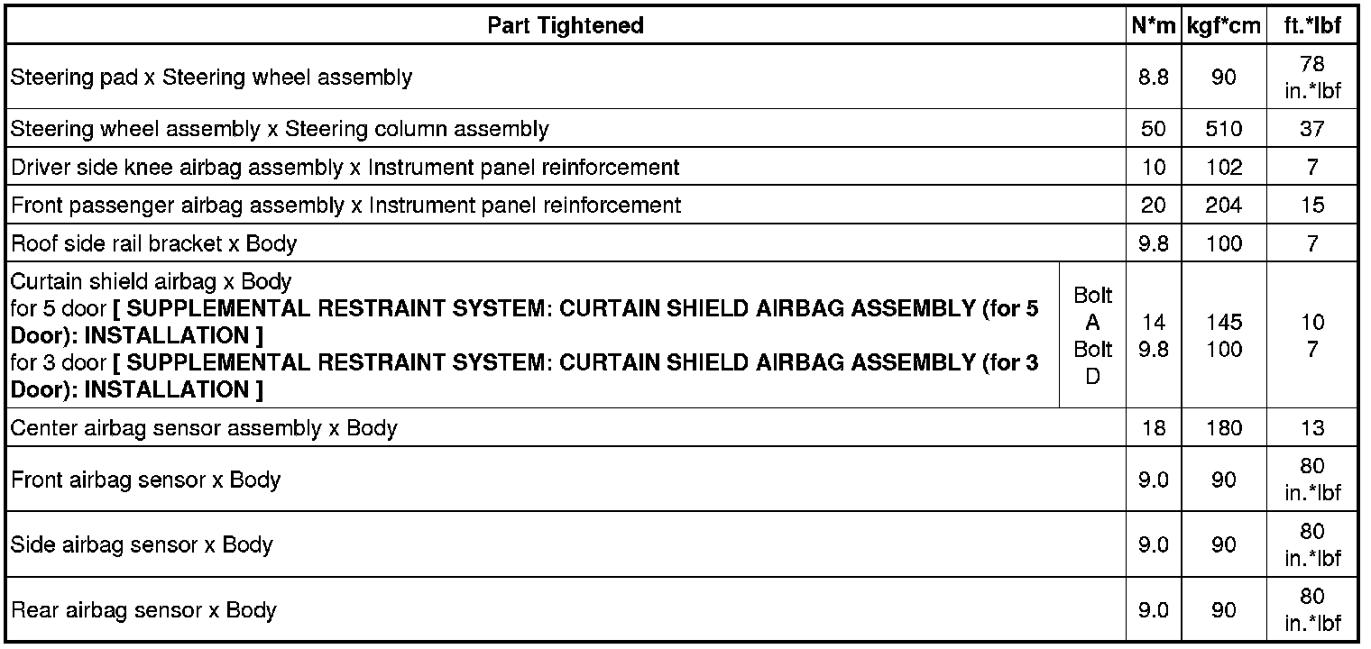 SERVICE SPECIFICATIONS: SUPPLEMENTAL RESTRAINT SYSTEM: TORQUE SPECIFICATIONS