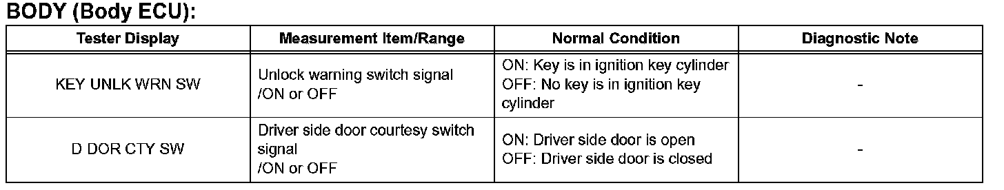 HINT: Using the intelligent tester's DATA LIST allows switch, actuator and other item values to be read without removing any parts. Reading the DATA LIST early in troubleshooting is one way to save time.