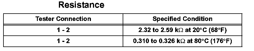 If the result is not as specified, replace the engine coolant temperature sensor.