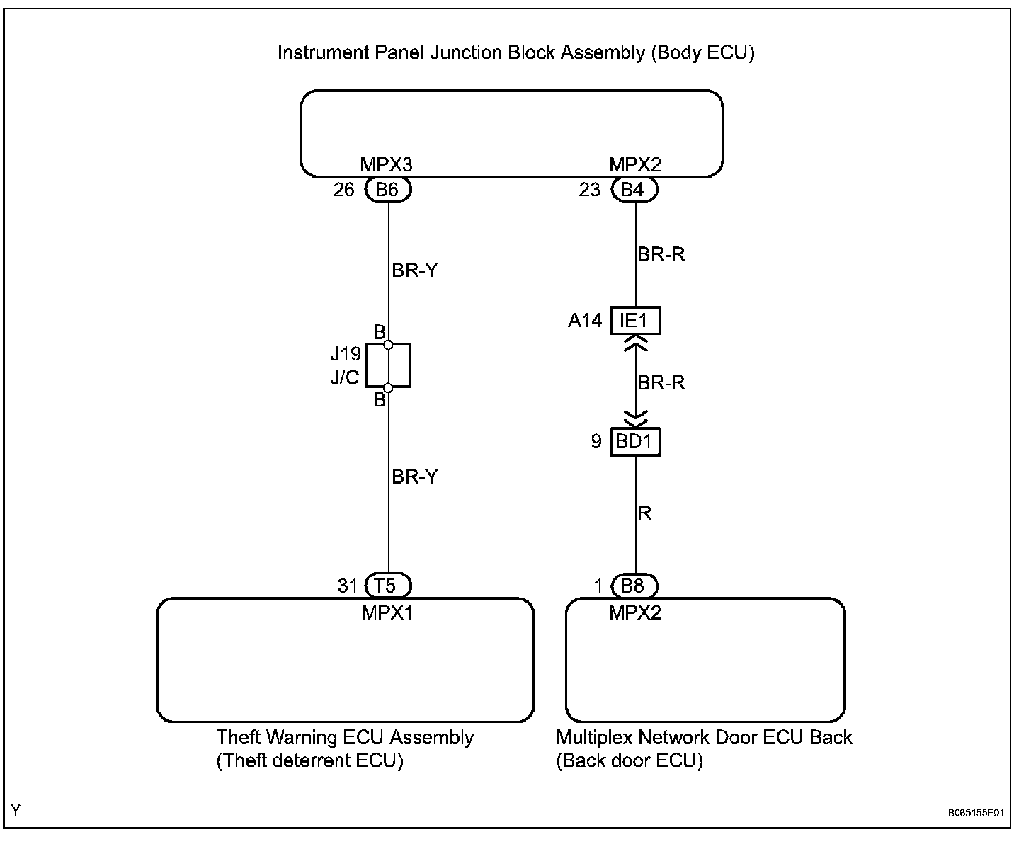 If there is a short-circuit (bus-down) in the line, communication to the system that had a short-circuit (bus-down) will be disabled and the DTC concerning the system will be output from the multiplex network body ECU.