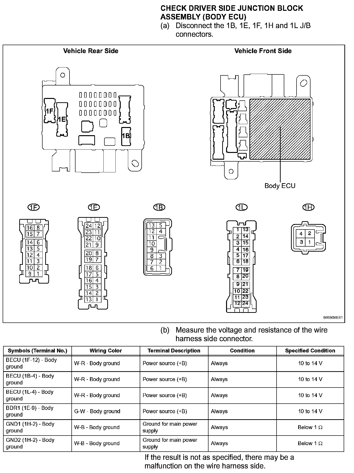Terminals Of Control Module/Pinouts - Check Driver Side Junction Block Assembly (Body ECU):