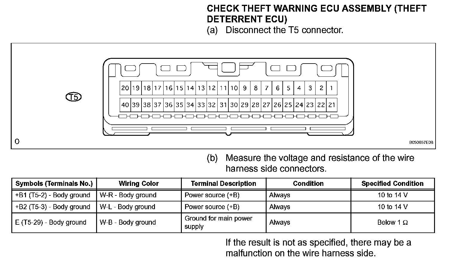Terminals Of Control Module/Pinouts - Check Theft Warning ECU Assembly (Theft Deterrent ECU):