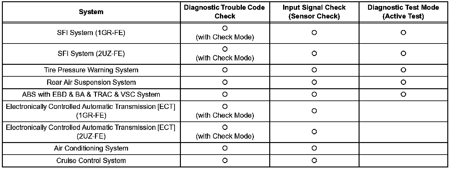 By using these functions, the problem areas can be narrowed down and troubleshooting is more effective. Diagnostic functions are incorporated in the following system in the 4RUNNER.