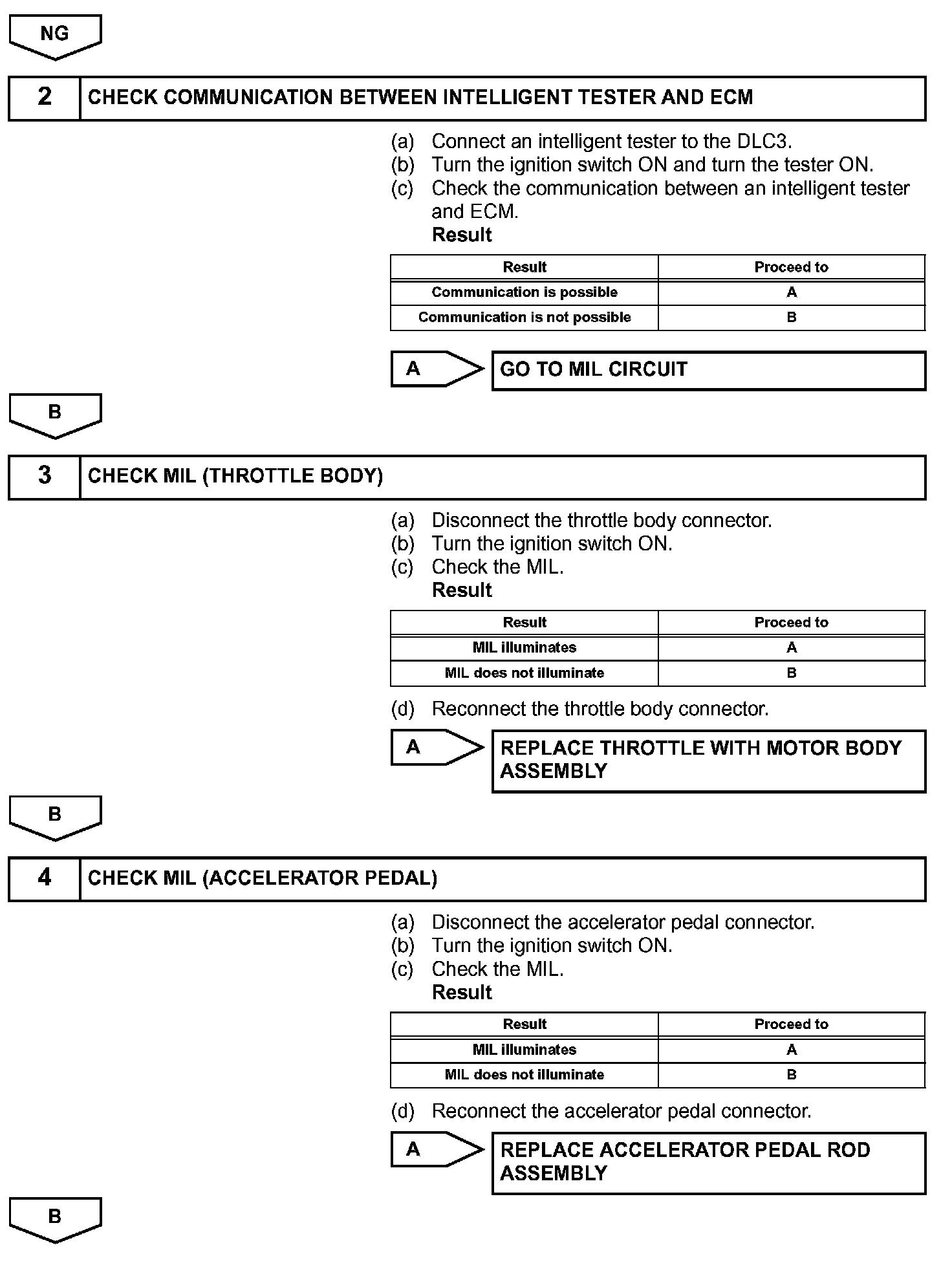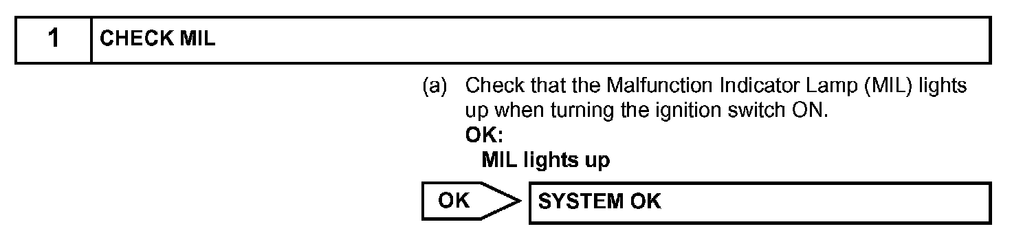 HINT: Under normal conditions, the MIL is illuminated for several seconds when the ignition switch is first turned ON. The MIL goes off when the engine is started.