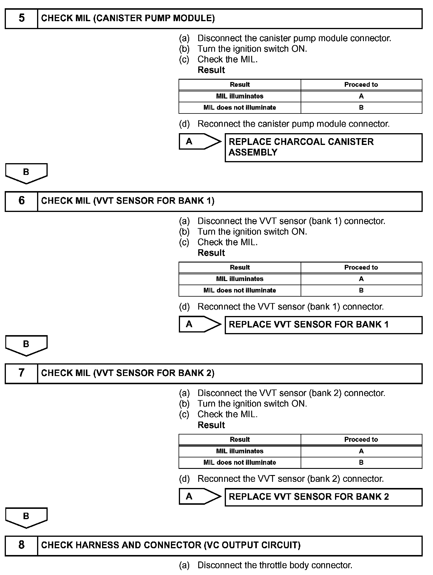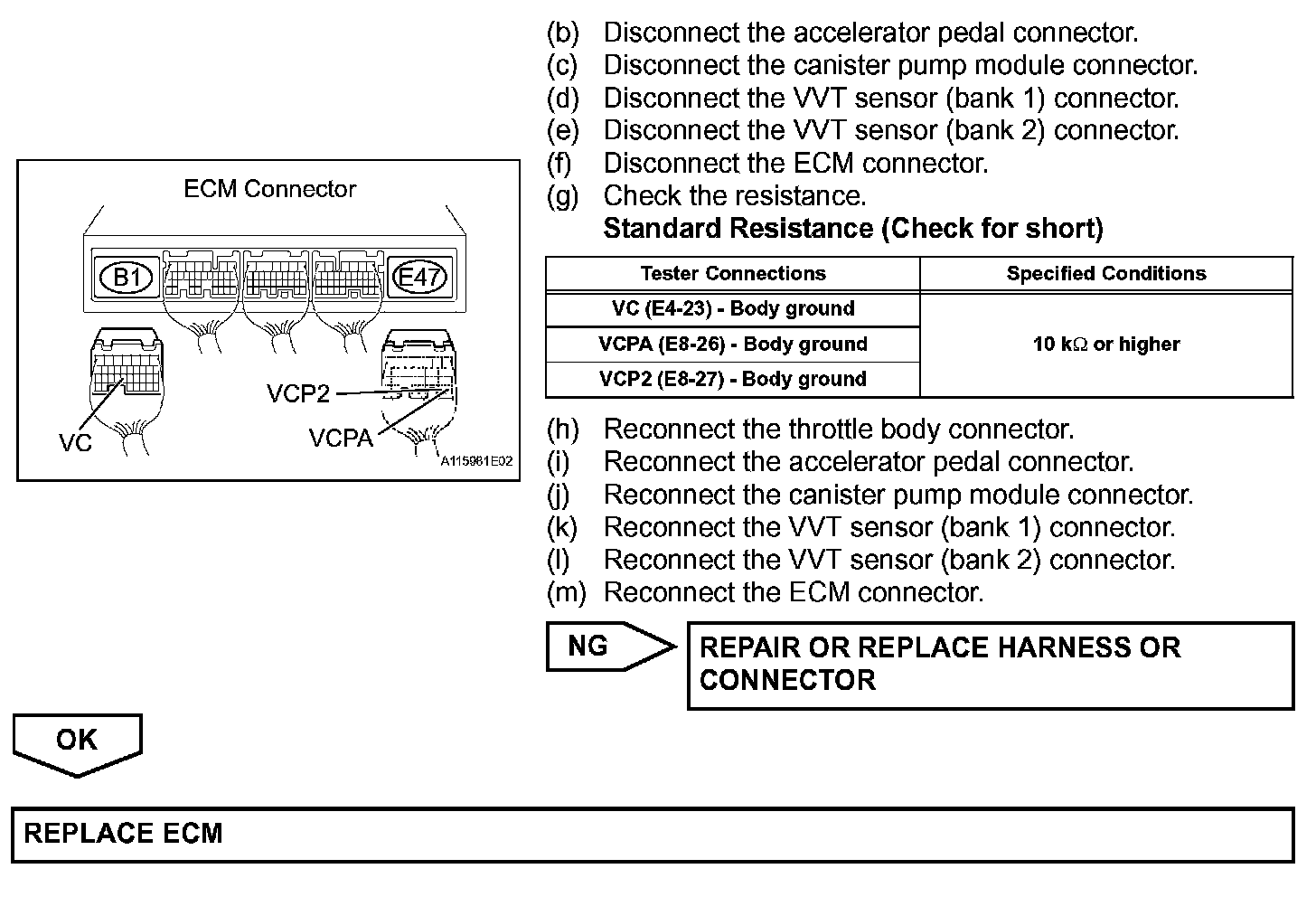 When the VC circuit is short-circuited, the microprocessor in the ECM and sensors that are supplied power through the VC circuit are inactivated because the power is not supplied from the VC circuit. Under this condition, the system does not start up and the MIL does not illuminate even if the system malfunctions.