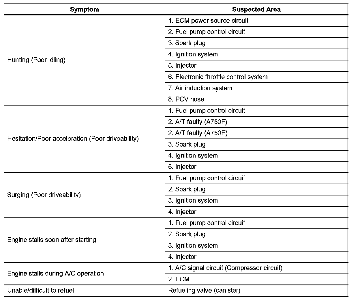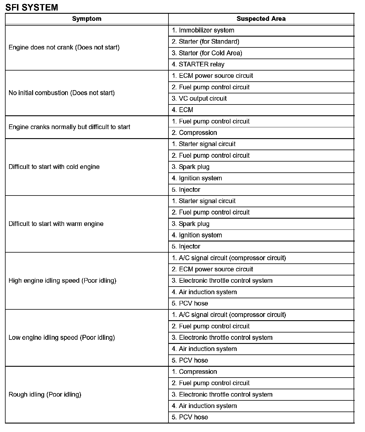HINT: When a malfunction is not confirmed by a DTC (Diagnostic Trouble Code) check and the cause of problem cannot be identified through a basic inspection, troubleshoot according to the priority order indicated in the table.