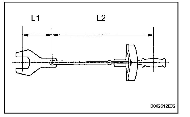 1. Use the formula below to calculate special torque values for situations where SST or an extension tool is combined with the torque wrench.