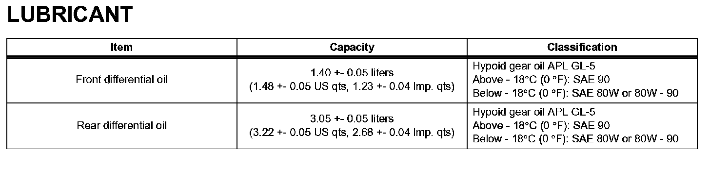 Differential - Lubricant: