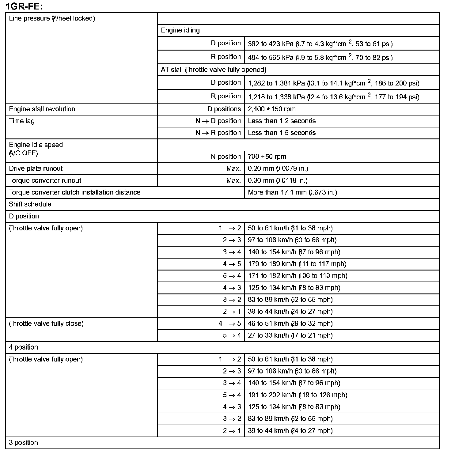 Automatic Transmission - Service Data (Part 1):