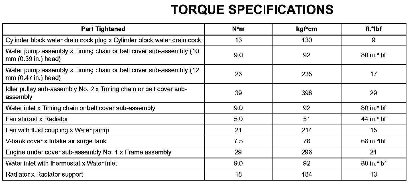 Cooling - Torque Specifications: