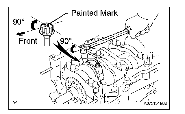 Retighten the cap bolts 90° as shown.