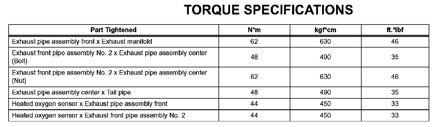 Exhaust - Torque Specifications: