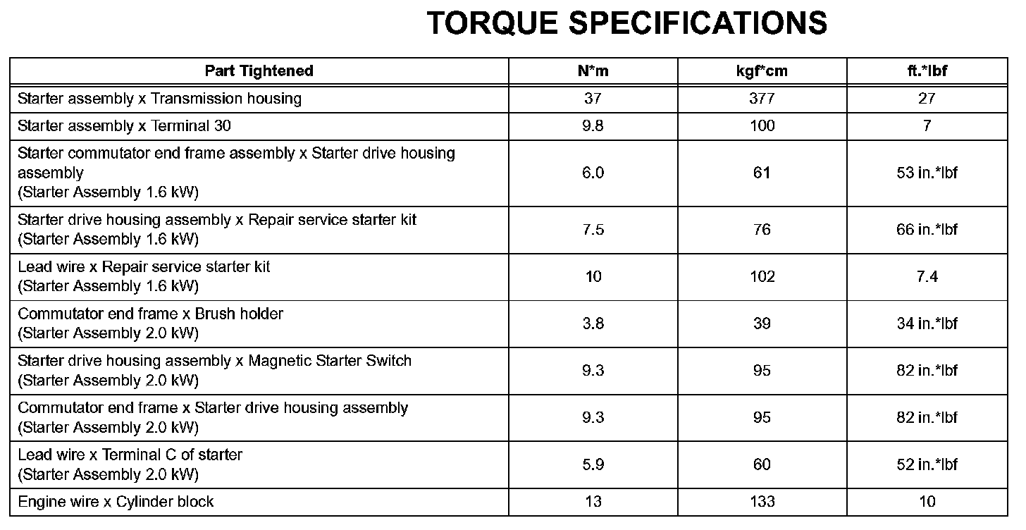 Starting - Torque Specifications: