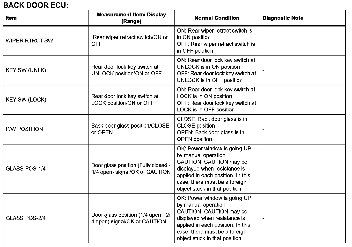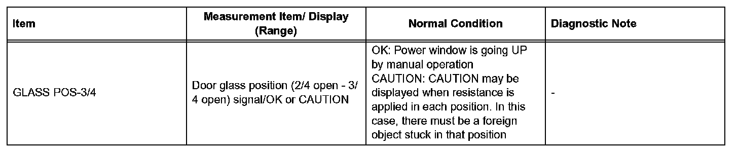 POWER WINDOW CONTROL SYSTEMDATA LIST / ACTIVE TEST