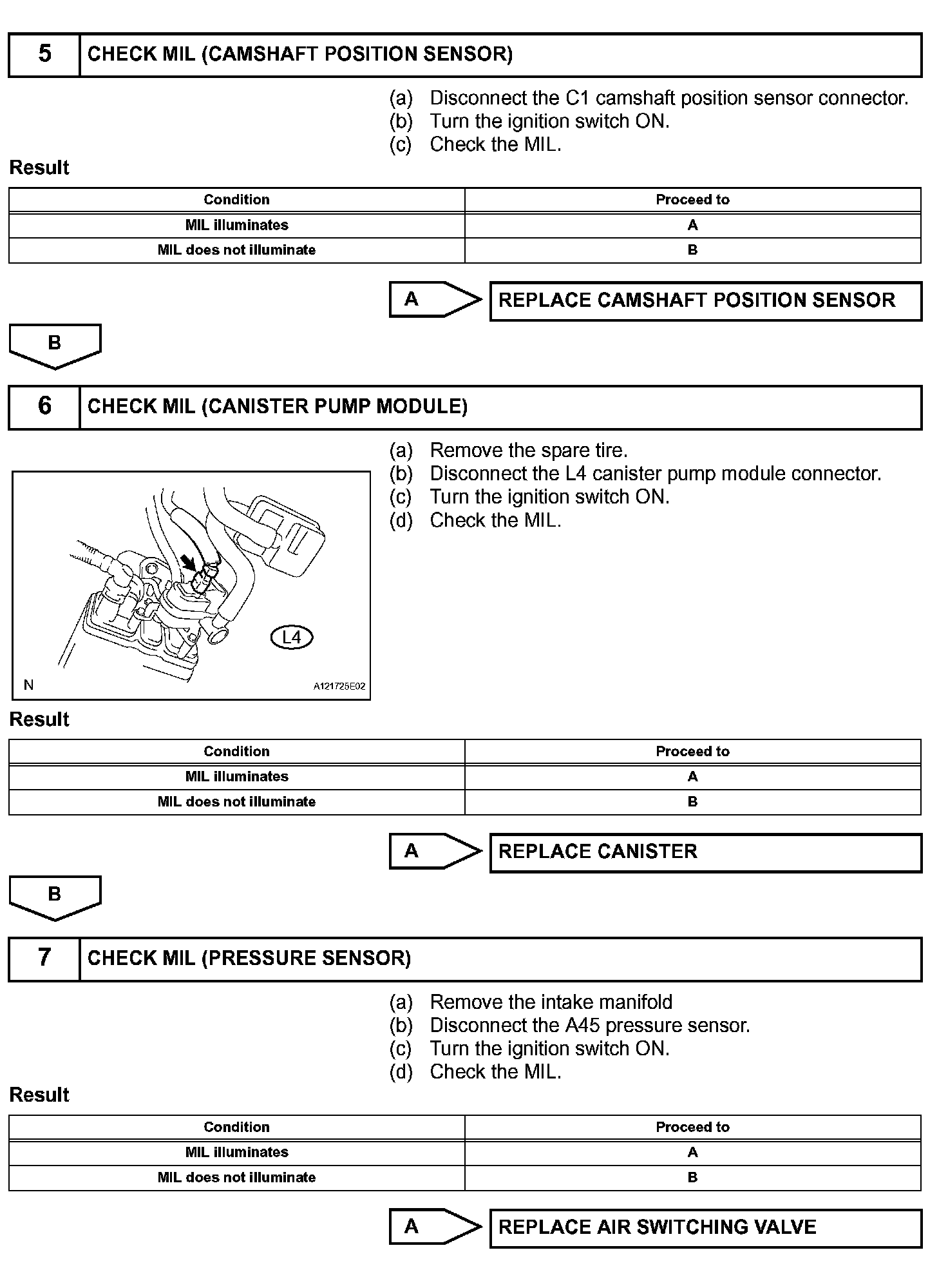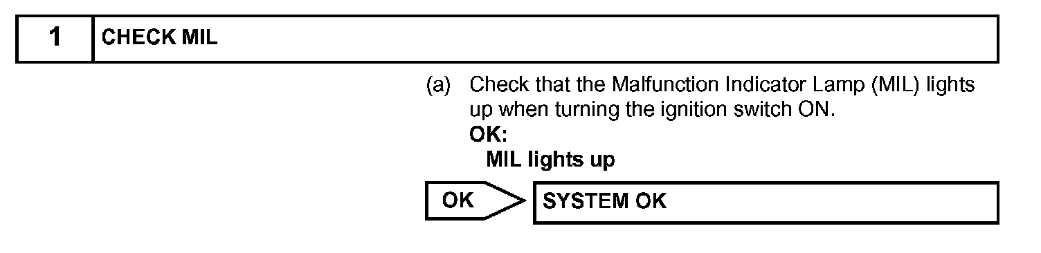 HINT: Under normal conditions, the MIL is illuminated for several seconds when the ignition switch is first turned ON. The MIL goes off when the engine is started.