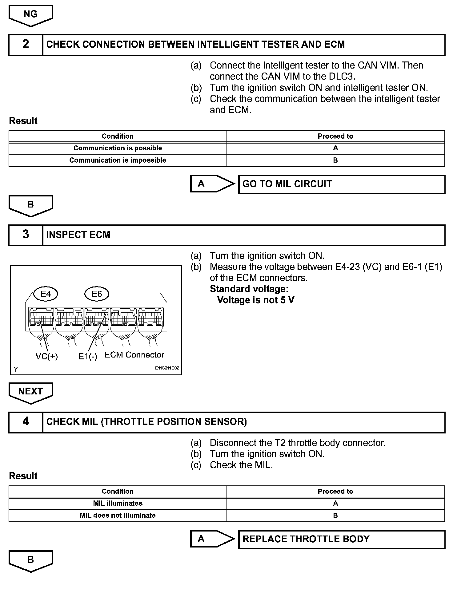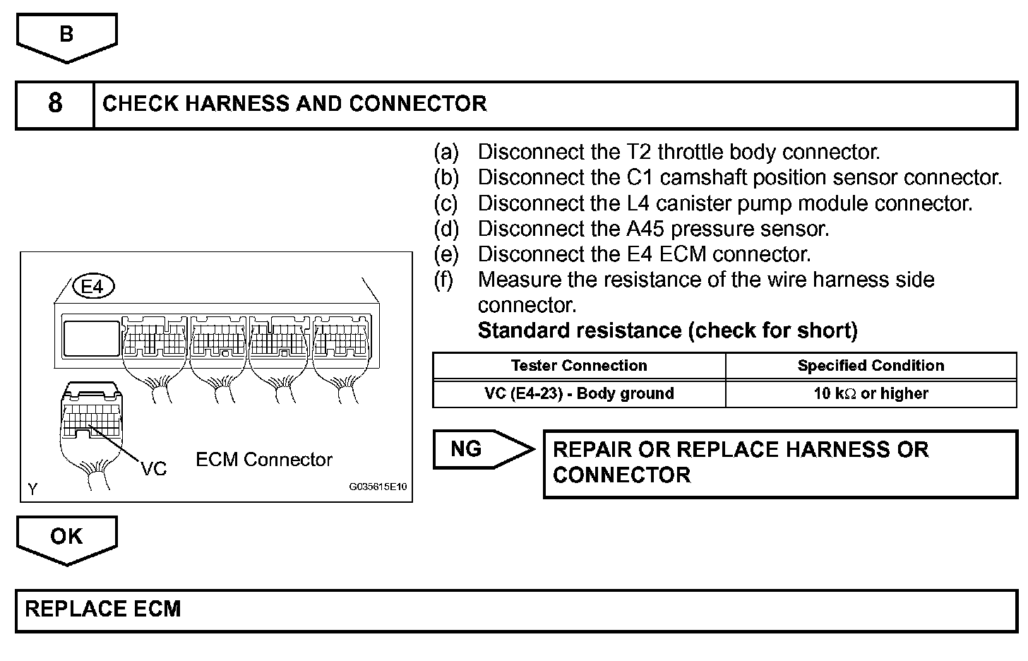 When the VC circuit is short-circuited, the microprocessor in the ECM and sensors that are supplied power through the VC circuit are deactivated because the power is not supplied from the VC circuit. Under this condition, the system does not start up and the MIL does not illuminate even if the system malfunctions.