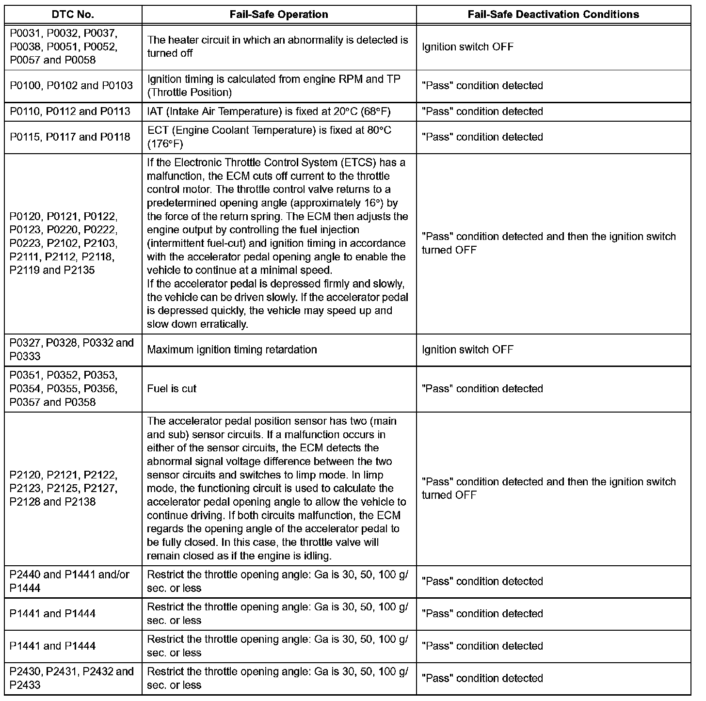 If any of the codes are recorded, the ECM enters the fail-safe mode.
