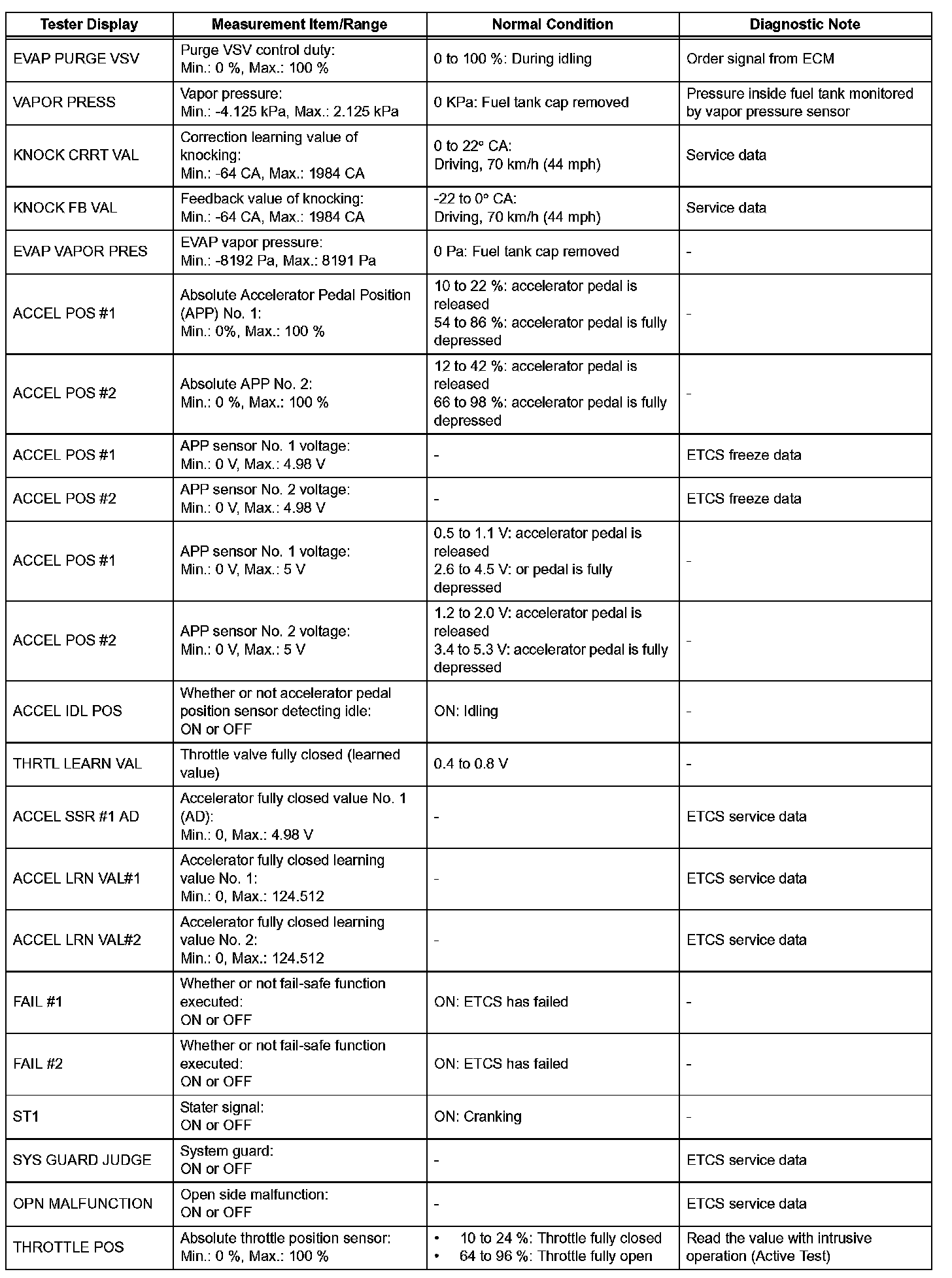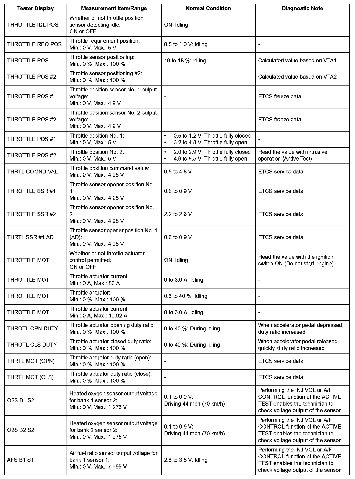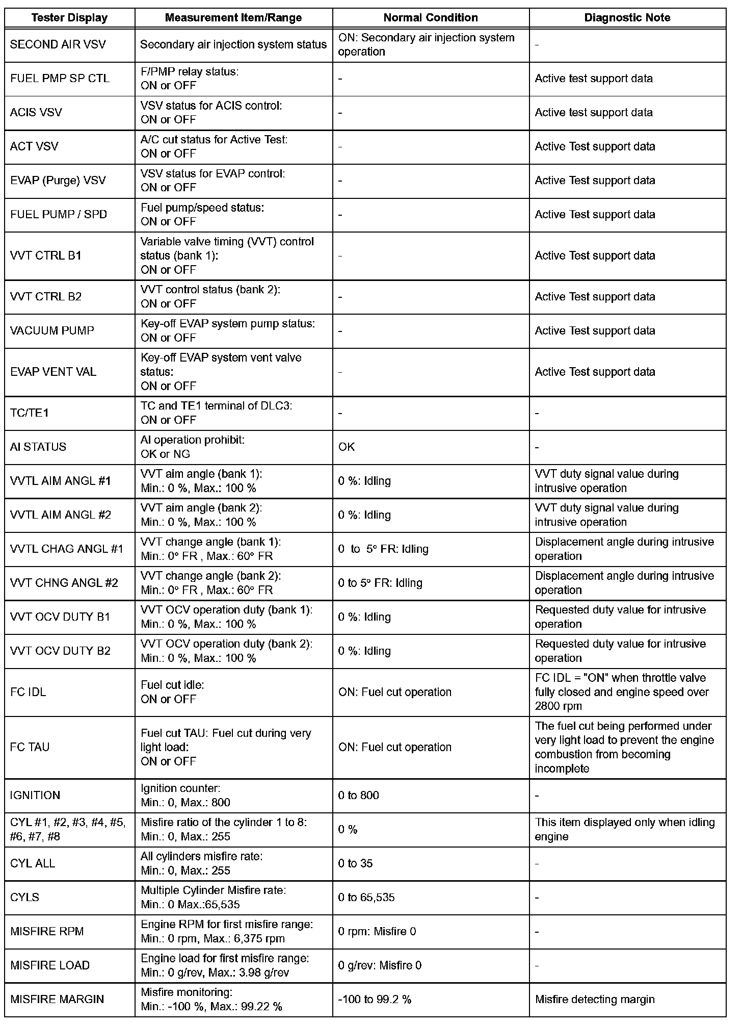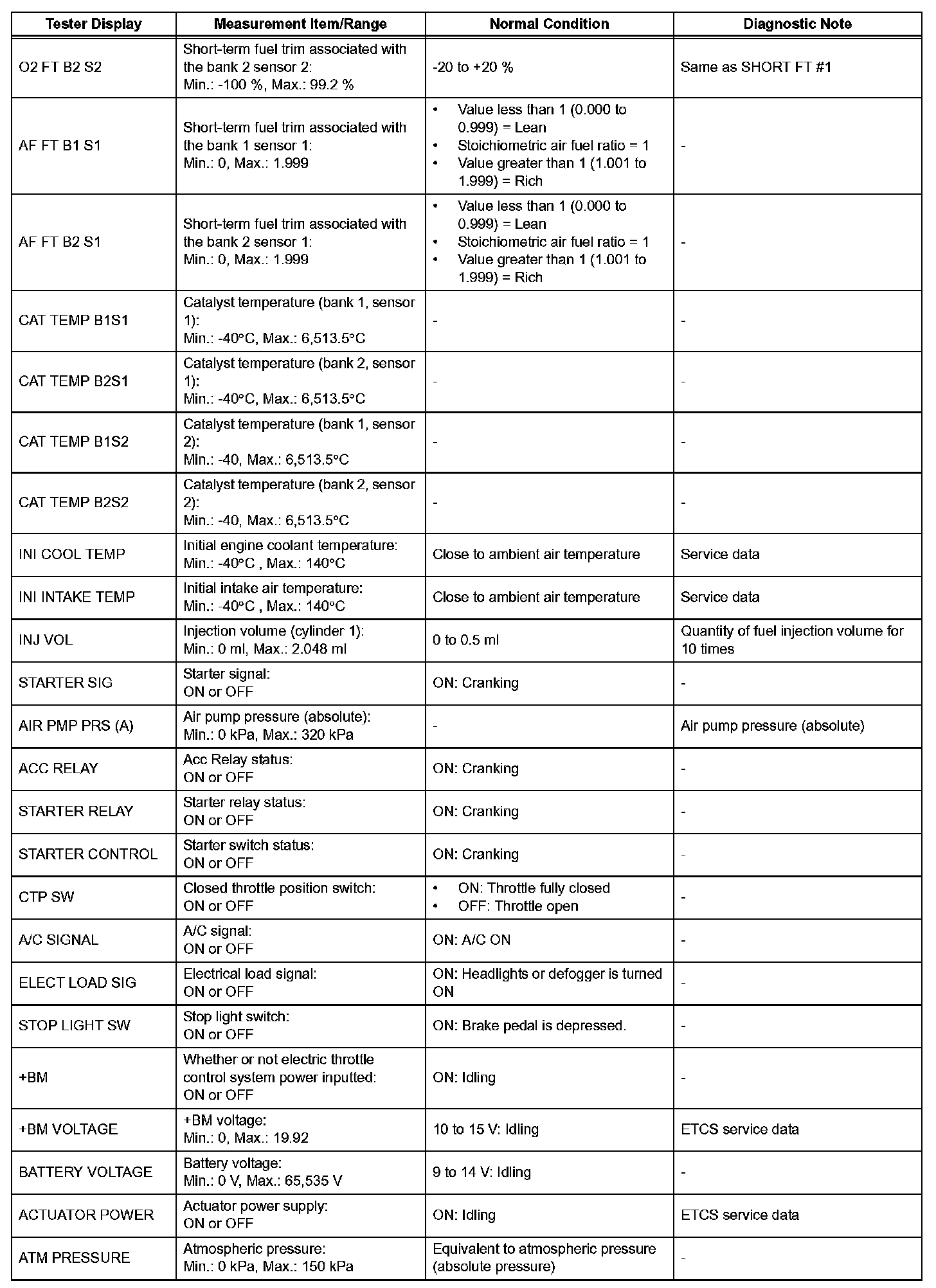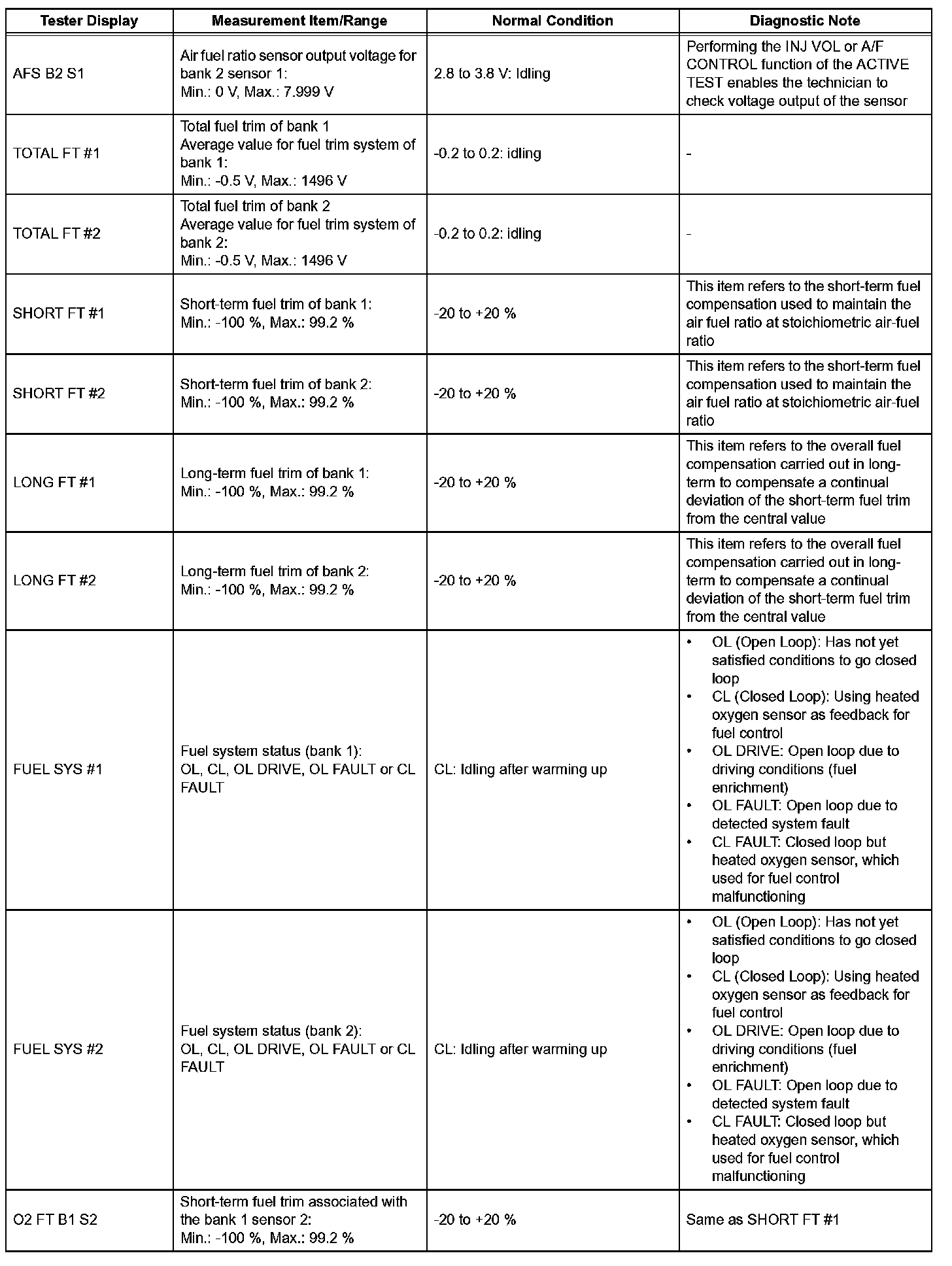 HINT: Normal Condition: If no conditions are specifically stated for "idling", the shift lever is in the N or P position, and the A/C switch is OFF and all accessory switches are OFF.