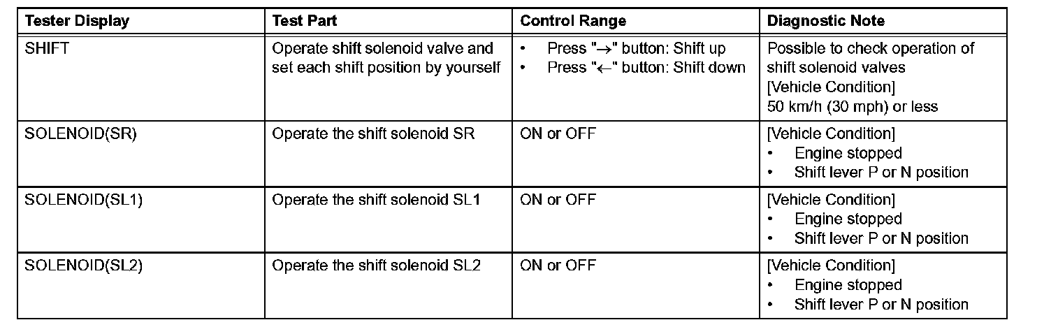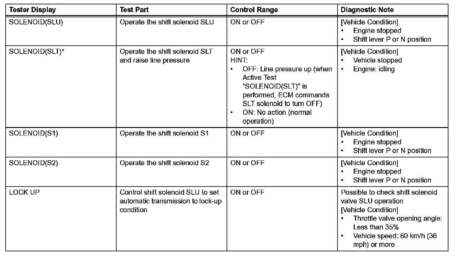 *: "SOLENOID(SLT)" in the ACTIVE TEST is performed to check the line pressure changes by connecting SST to the automatic transmission, which is used in the HYDRAULIC TEST as well. Hydraulic Test