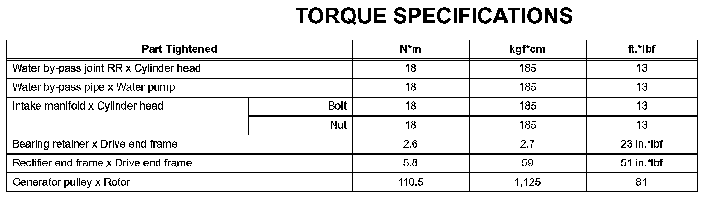 Charging - Torque Specifications: