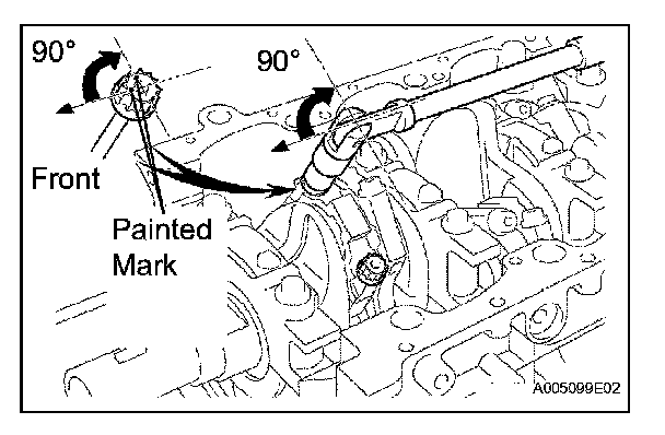 Retighten the cap bolts 90° as shown in the illustration.