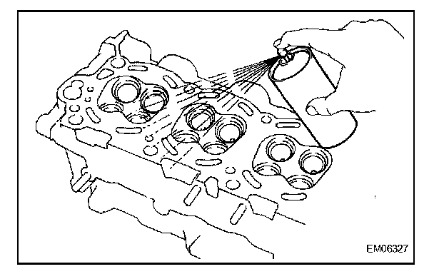 Using a dye penetrant, check the combustion chamber, intake ports, exhaust ports and cylinder block surface for cracks.