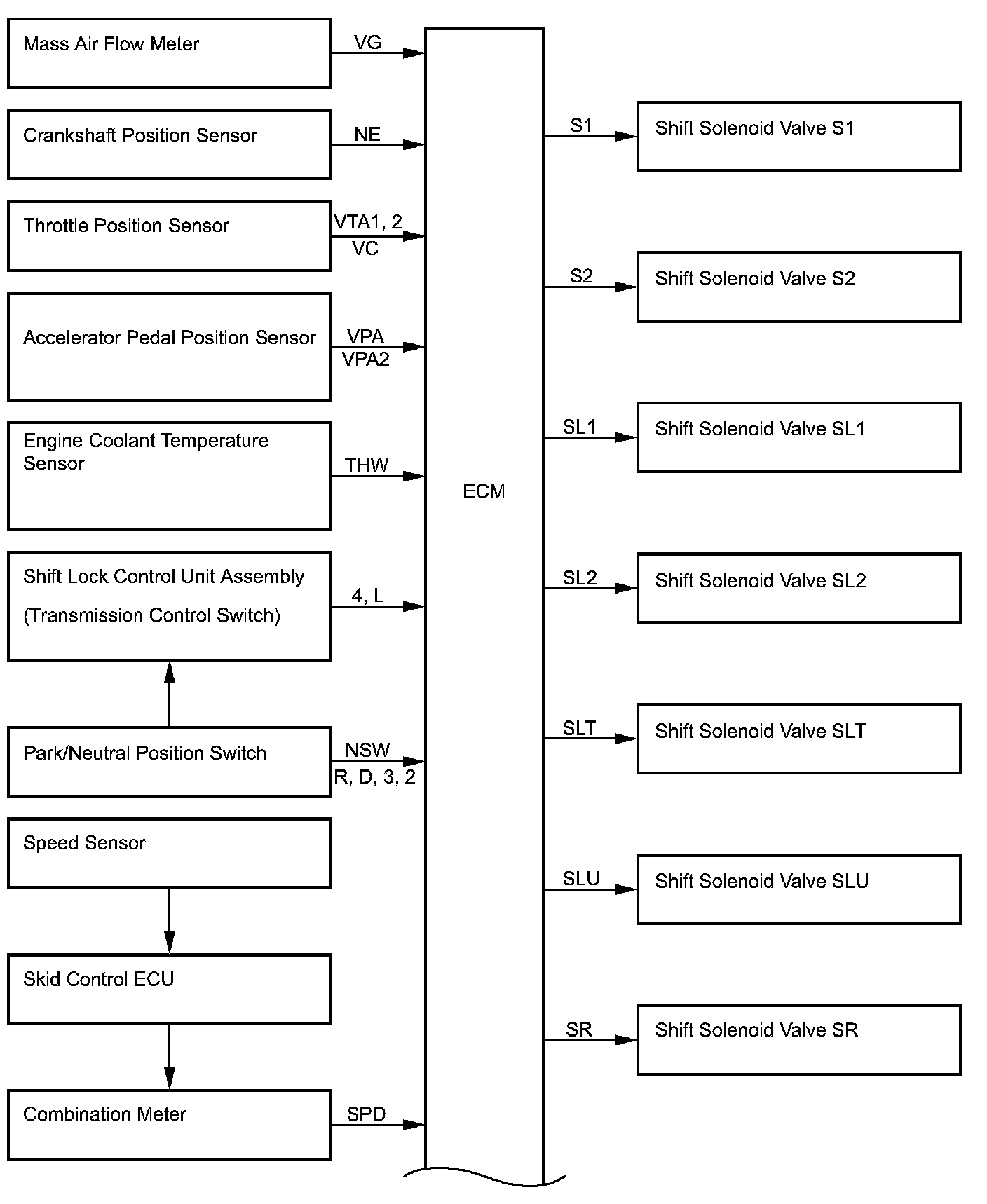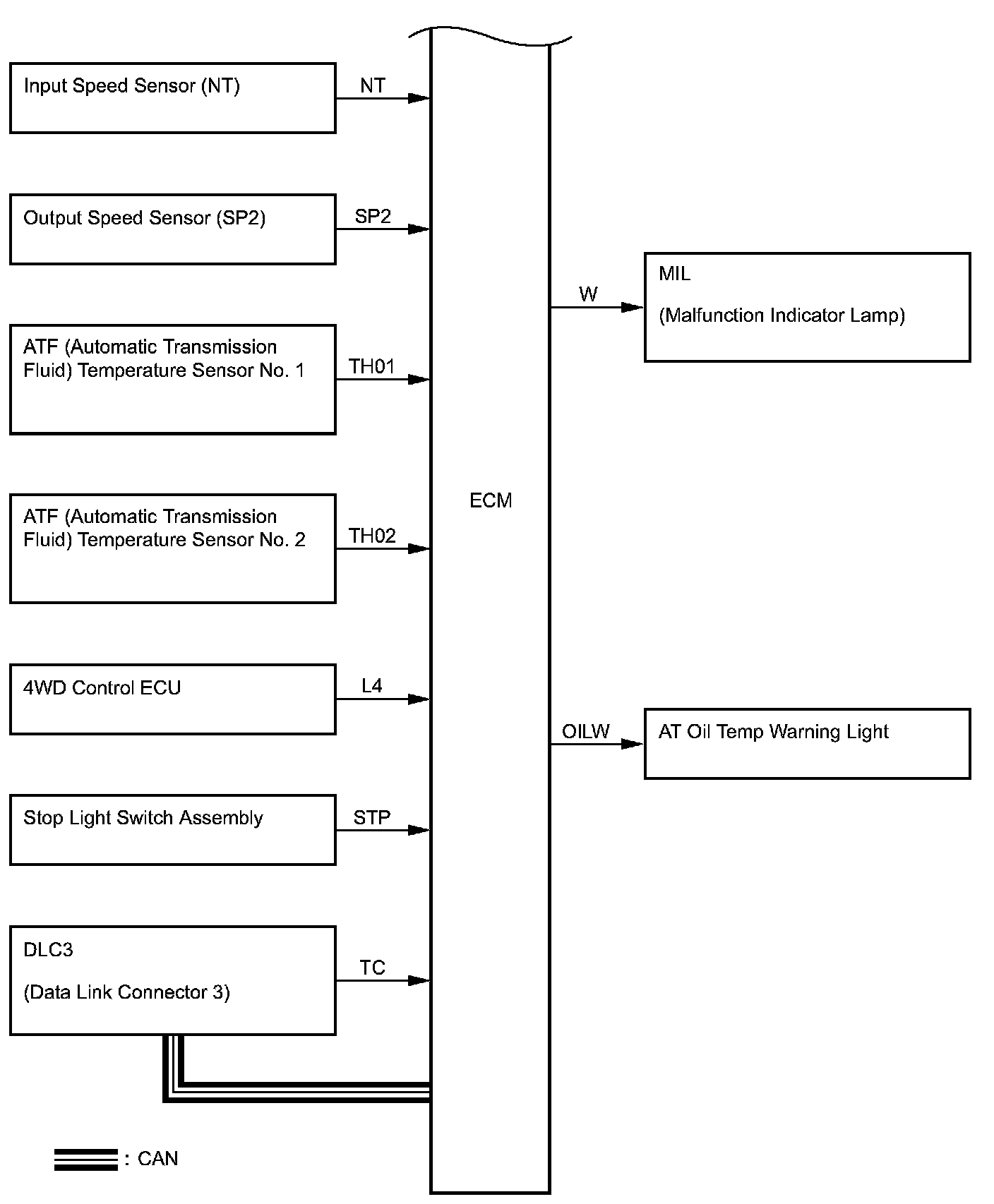 SYSTEM DIAGRAMThe configuration of the electronic control system in the A750F automatic transmission is as shown in the following chart.