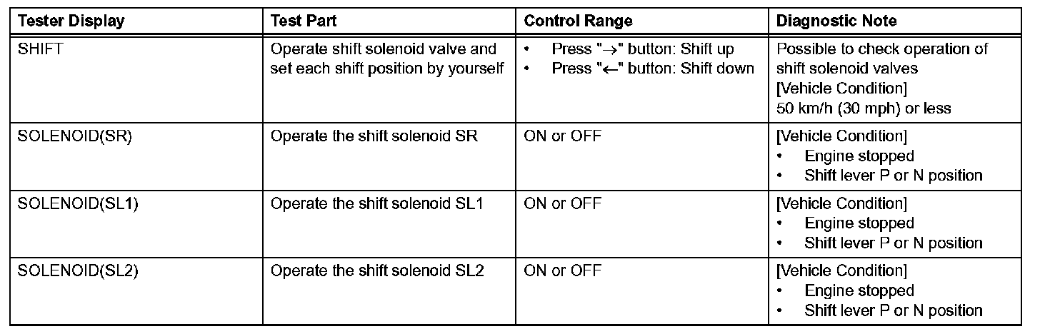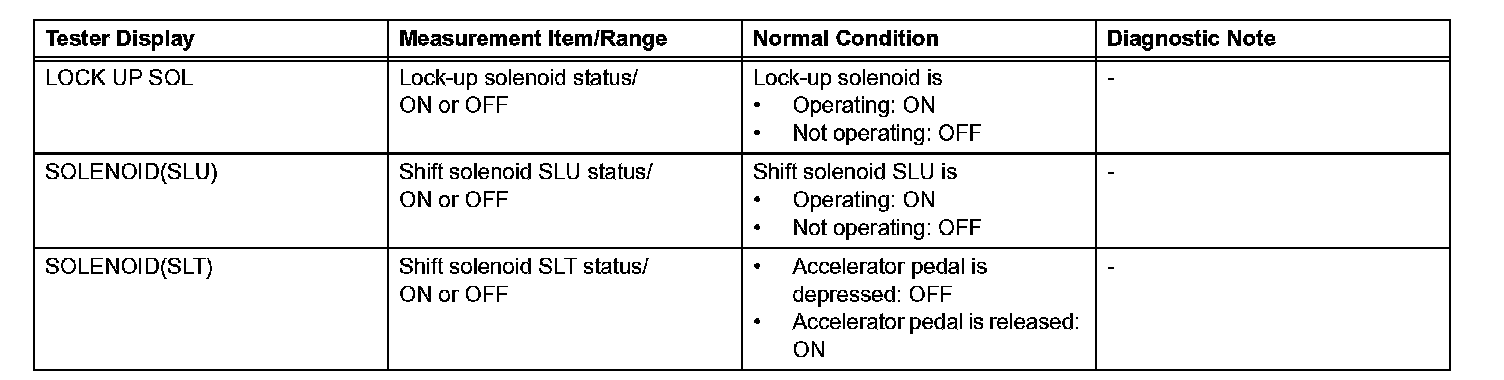 *: "SOLENOID(SLT)" in the ACTIVE TEST is performed to check the line pressure changes by connecting SST to the automatic transmission, which is used in the HYDRAULIC TEST as well.Hydraulic Test