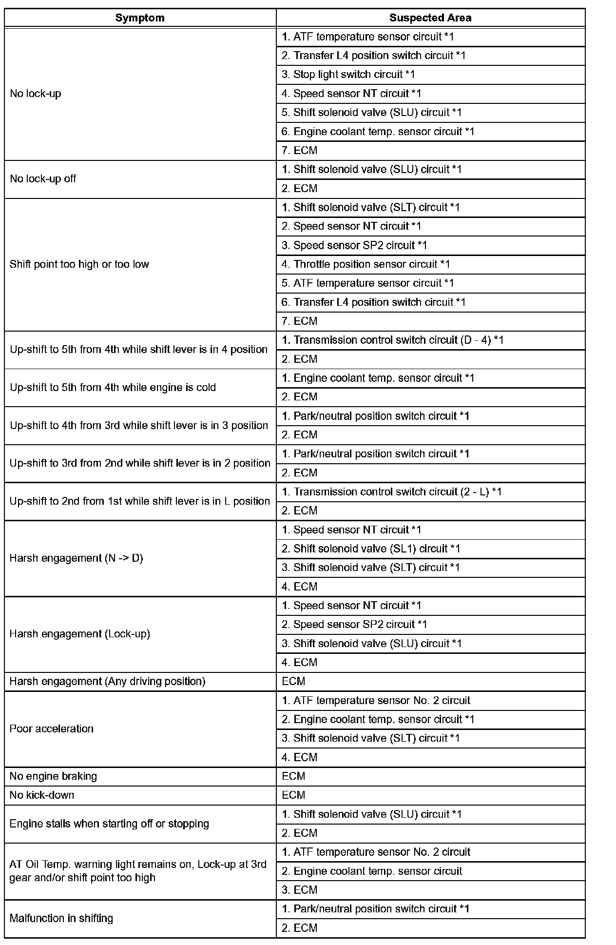 PROBLEM SYMPTOMS TABLEHINT: