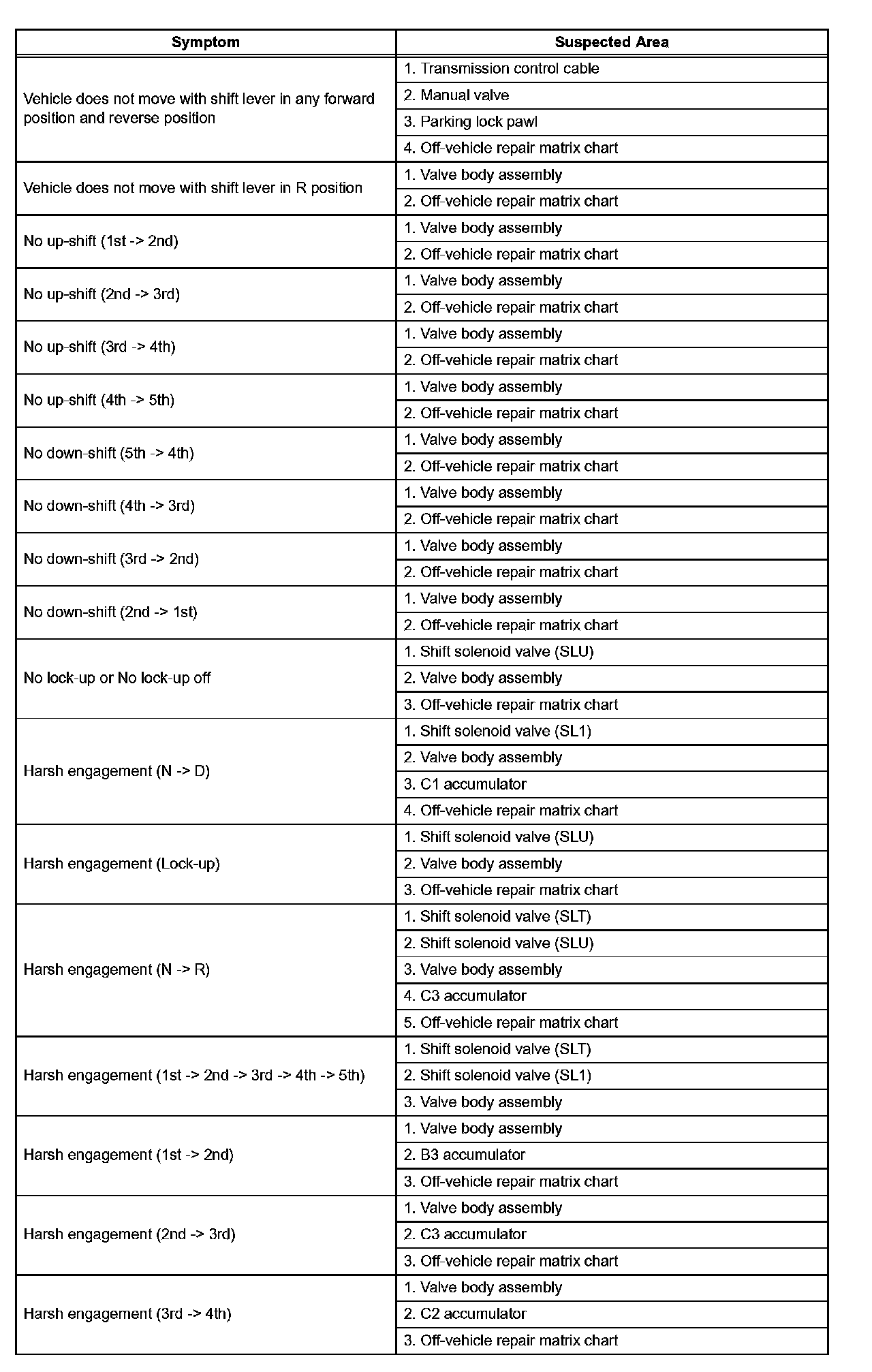 If the instruction "Proceed to next circuit inspection shown on matrix chart" is given in the flow chart of each circuit, proceed to the circuit with the next highest number in the table to continue the check.