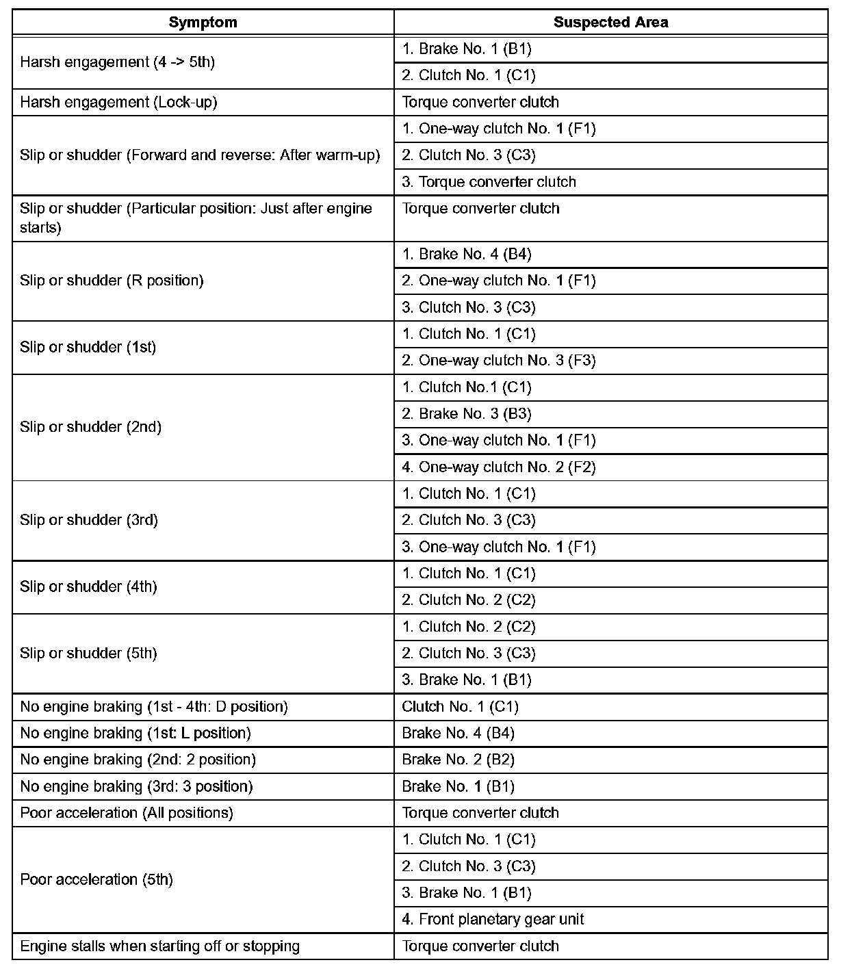 Refer to the table when the trouble cause is considered to be electrical.