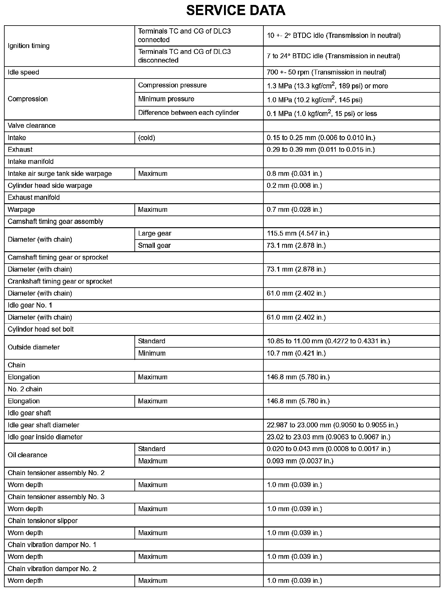 Engine Mechanical - Service Data (Part 1):