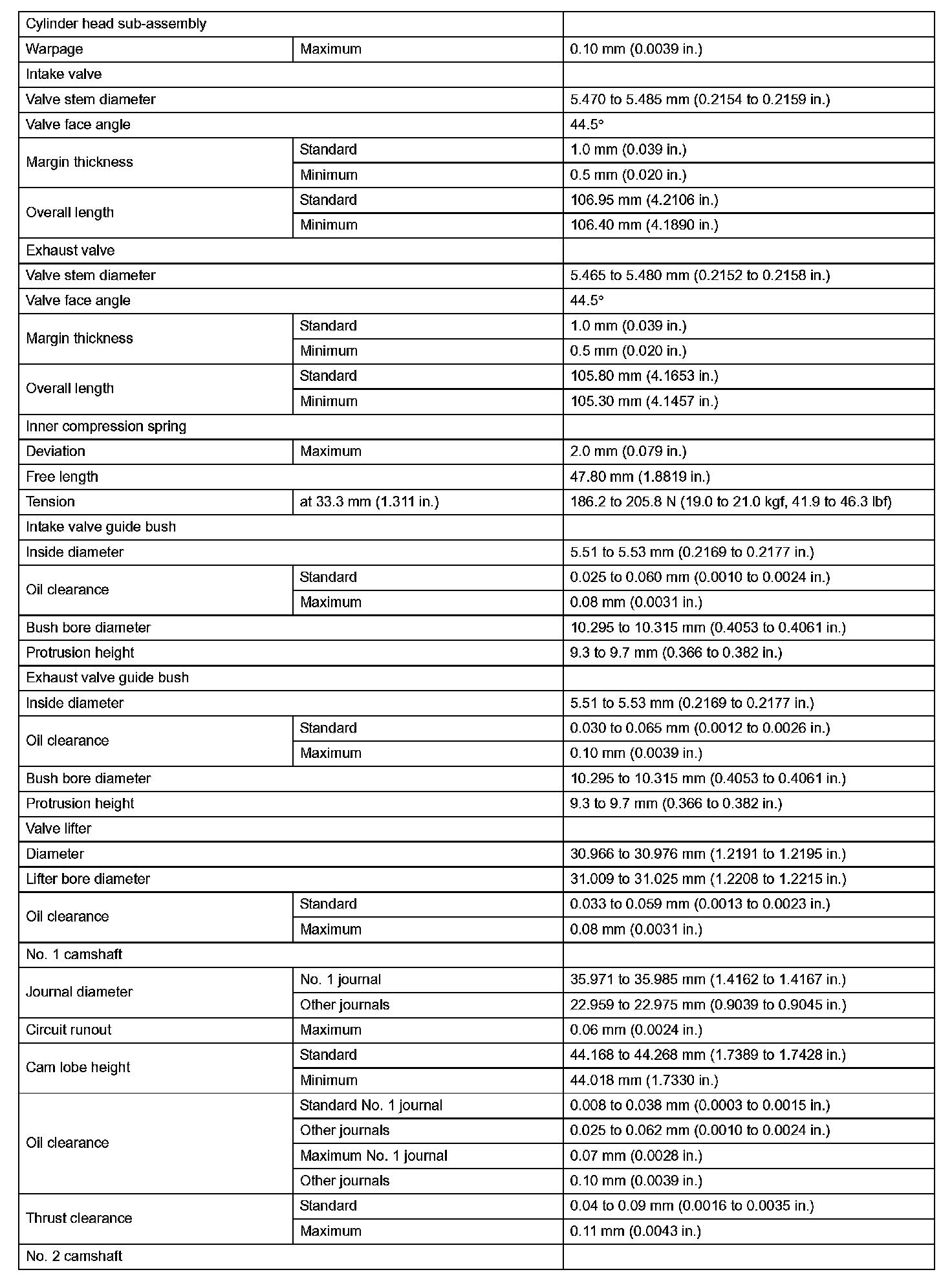 Engine Mechanical - Service Data (Part 2):
