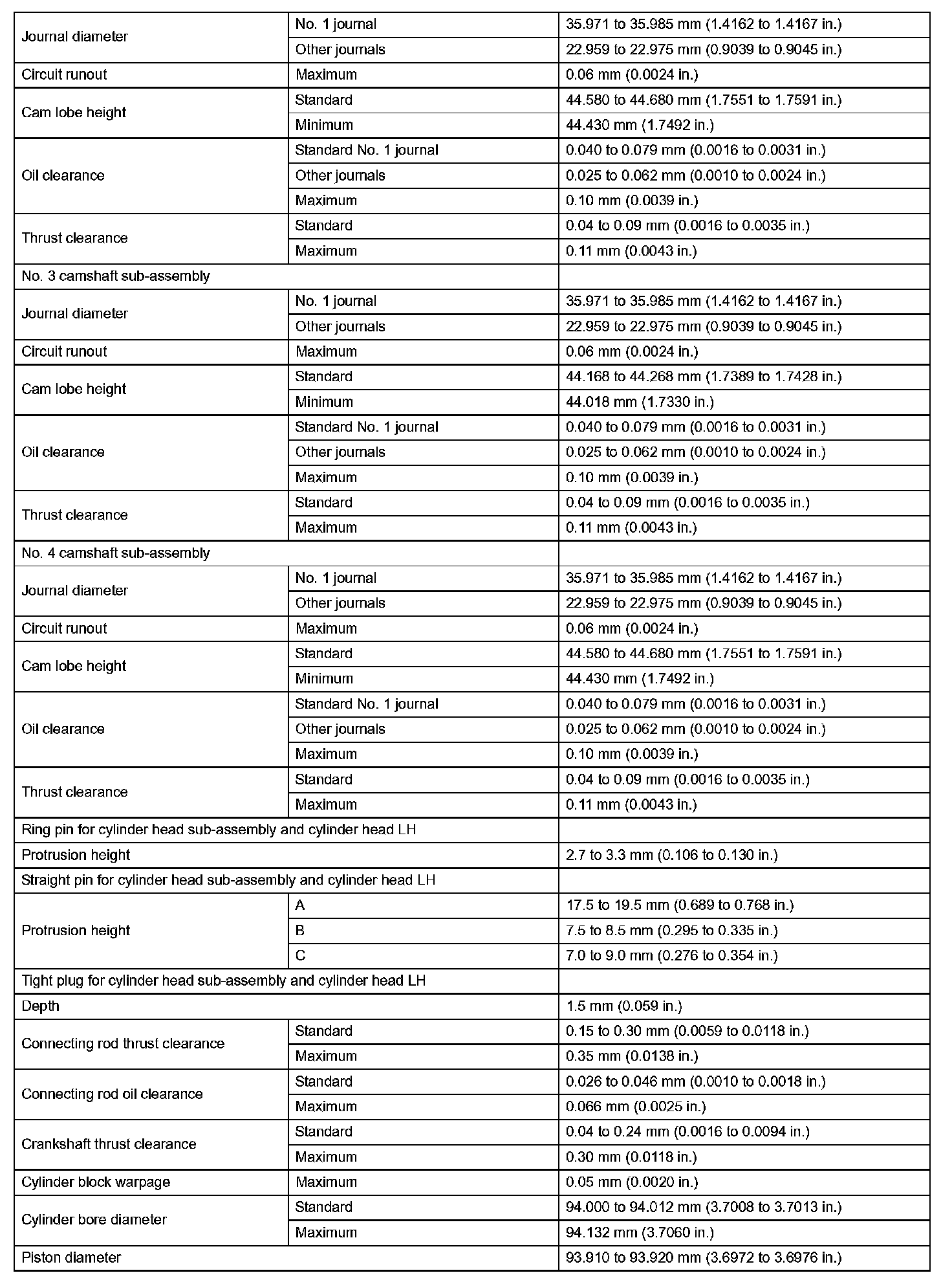 Engine Mechanical - Service Data (Part 4):